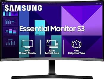 Samsung Essential Series 1800R Curved Monitor 27 Inch (68.5 cm) FHD (1,920 x 1,080 Resolution), VA Panel, 100 Hz, 4ms(GTG), D-Sub, HDMI, Headphone Jac...