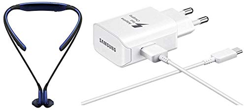 Samsung Original Level U Bluetooth Wireless in-Ear Headphones (Black and Sapphire) + Samsung EP-TA20IWECGIN Type C Fast Charger (White)