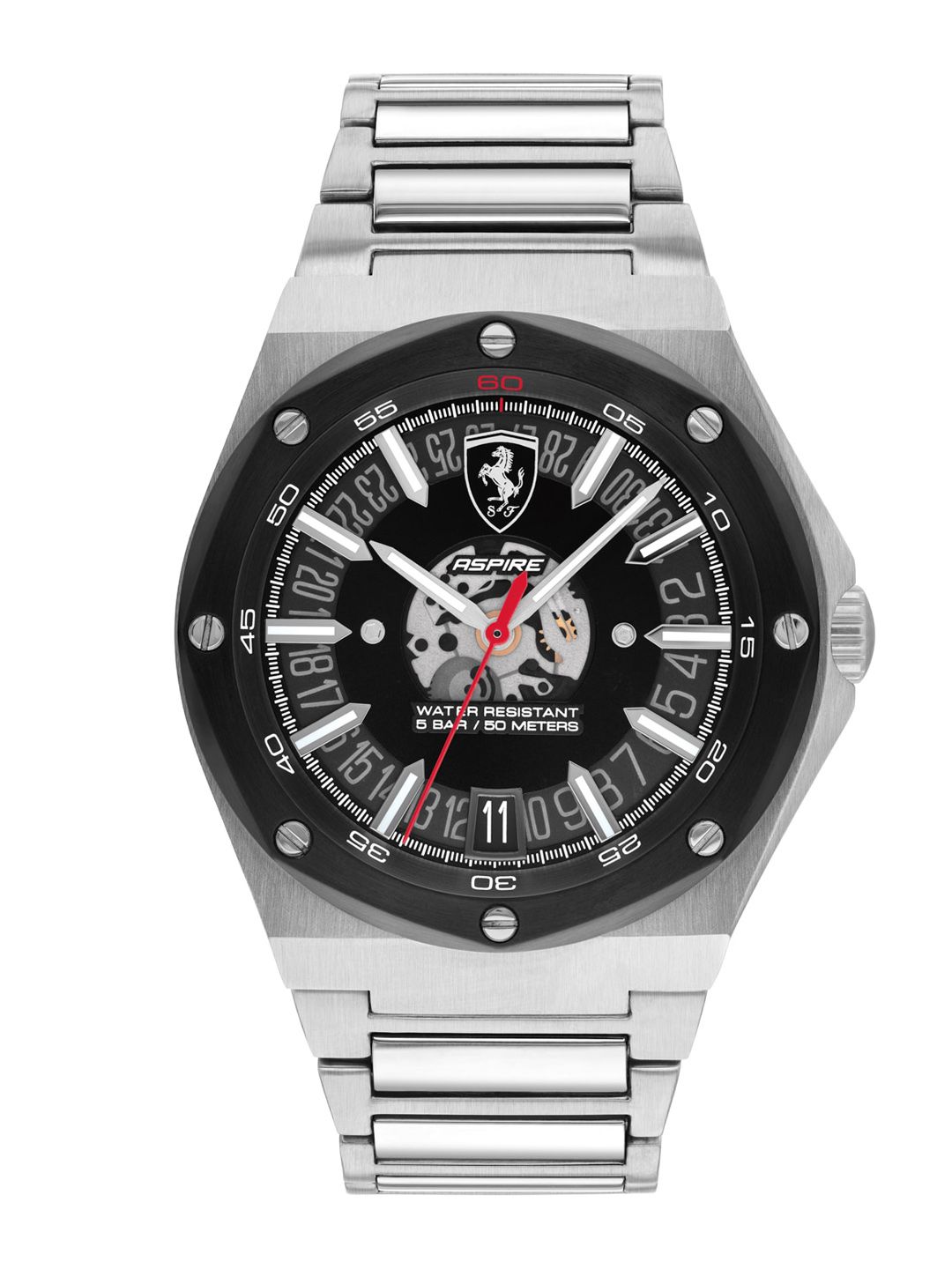 SCUDERIA FERRARI Men Black  Silver Toned Stainless Steel Analogue Watch 0830846