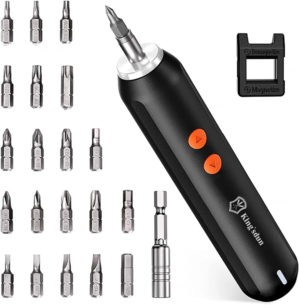 • 24PCS MULTI-PURPOSE SCREWDRIVER KIT: Professional screwdriver kit, complete set of electric screw driver set kit, including 1 handy screwdriver, 1 extension adapter rod, 20pcs screwdriver bit which covers most commonly used type of screwdriver bit, phillips, slotted, cross screwdriver bit and more. One screwdriver set tools kit can meet your various needs.