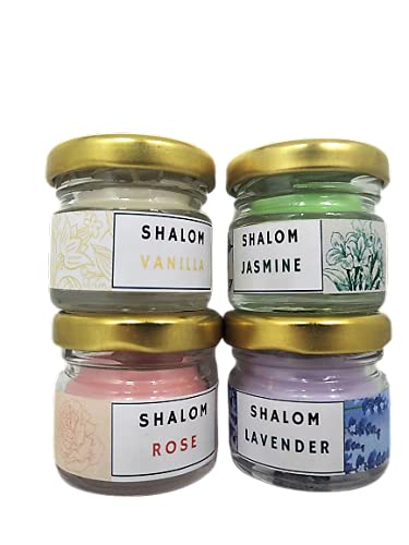SHALOM Candle Stores Handmade Vanilla, Rose, Jasmine and Lavender Scented Soy Wax Mini jar Candles Combo Pack for Home Decoration, aromatherapy (6+ Hr