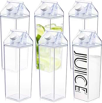 Shield Plus 500ML Milk Carton Water Bottle, Clear Plastic Milk Box Portable Leakproof Square Juice Bottle for Outdoor Sports Travel Camping (1)