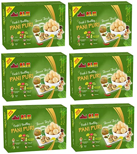 SLM Pani Puri Golgappe Puchka kit with 4 Different Flavours 50Pcs Puris.( Pack of 6 ) Pudhina Pani, Hing Pani, Lasooni Pani, Khatha Meetha Imli Pani and khajur Imli Chutney 250g Each Combo