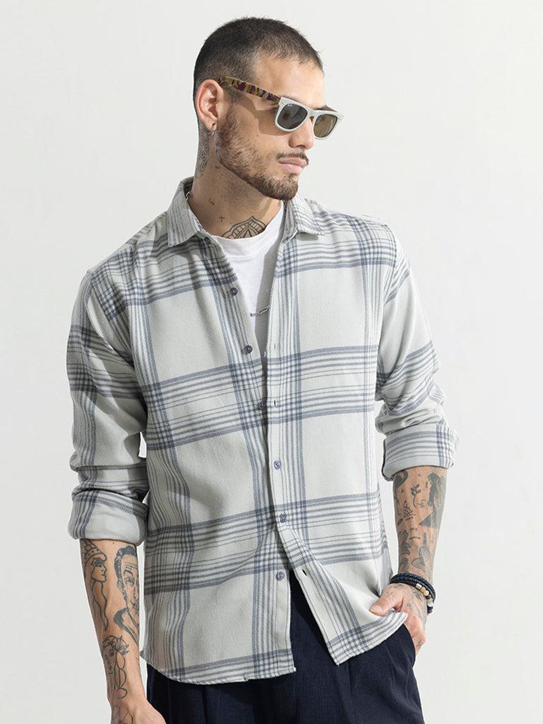 Snitch Grey Classic Slim Fit Checked Cotton Shacket