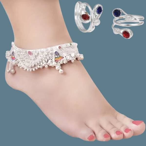 SONU SELECT Beautiful Silver Plated Bridal Payal Pajeb For Women With 2 Toering Alloy Anklet