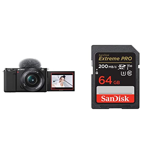 Sony Alpha ZV-E10L 24.2 Mega Pixel Interchangeable-Lens Mirrorless vlog Camera with 16-50 mm Lens & SanDisk Extreme Pro SD UHS I 64GB Card for 4K Video for DSLR and Mirrorless Cameras 200MB/s