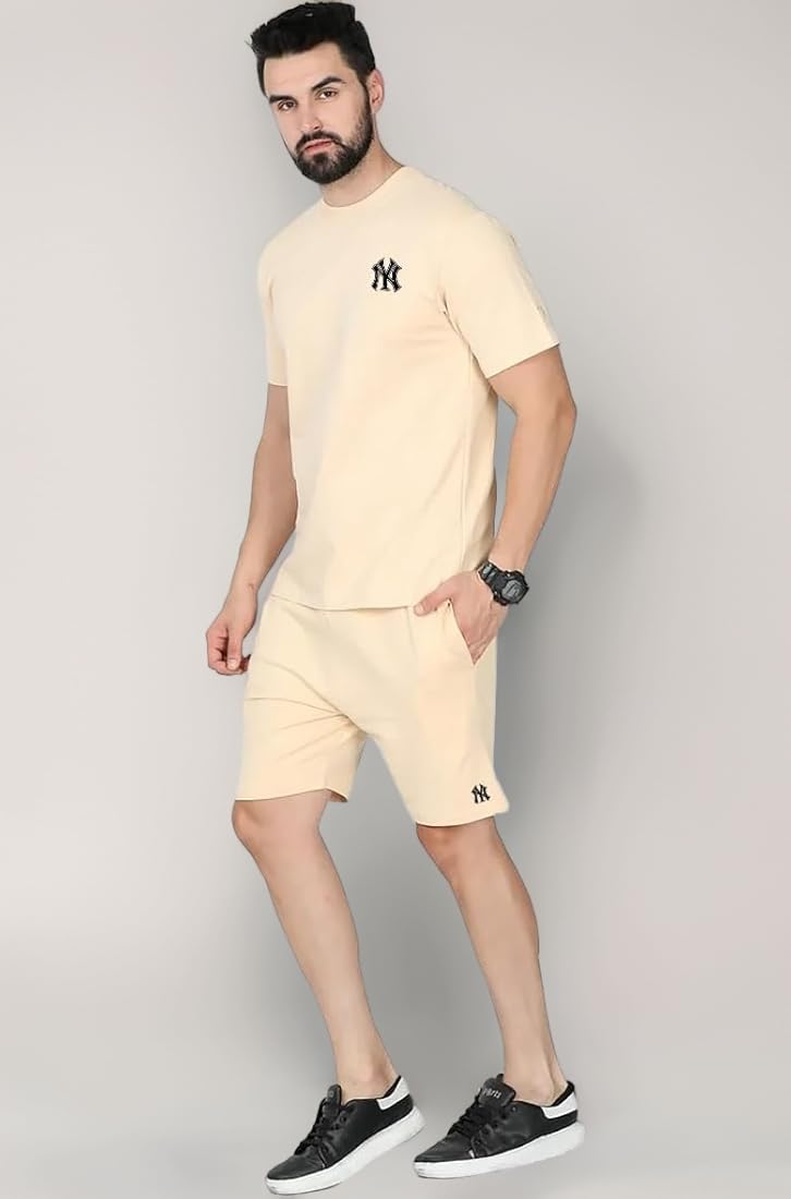 Spense Clothing Men's Solid Cotton Round Neck Travel Stylish Casual Sleepwear & Launge Wear Nightdress, Regular Fit T-Shirt and Shorts (M_P_H_128__)