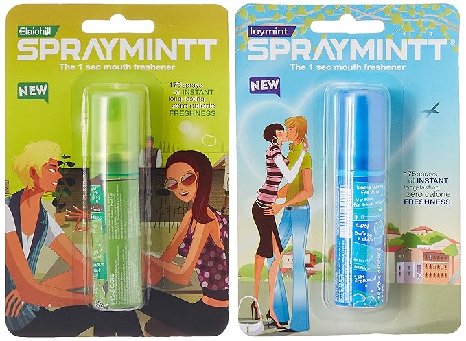 Spraymintt Mouth Freshener - Pack of 2 (Ice Mint- 15g) and Spraymint Mouth Freshener (Elaichi- 15g)