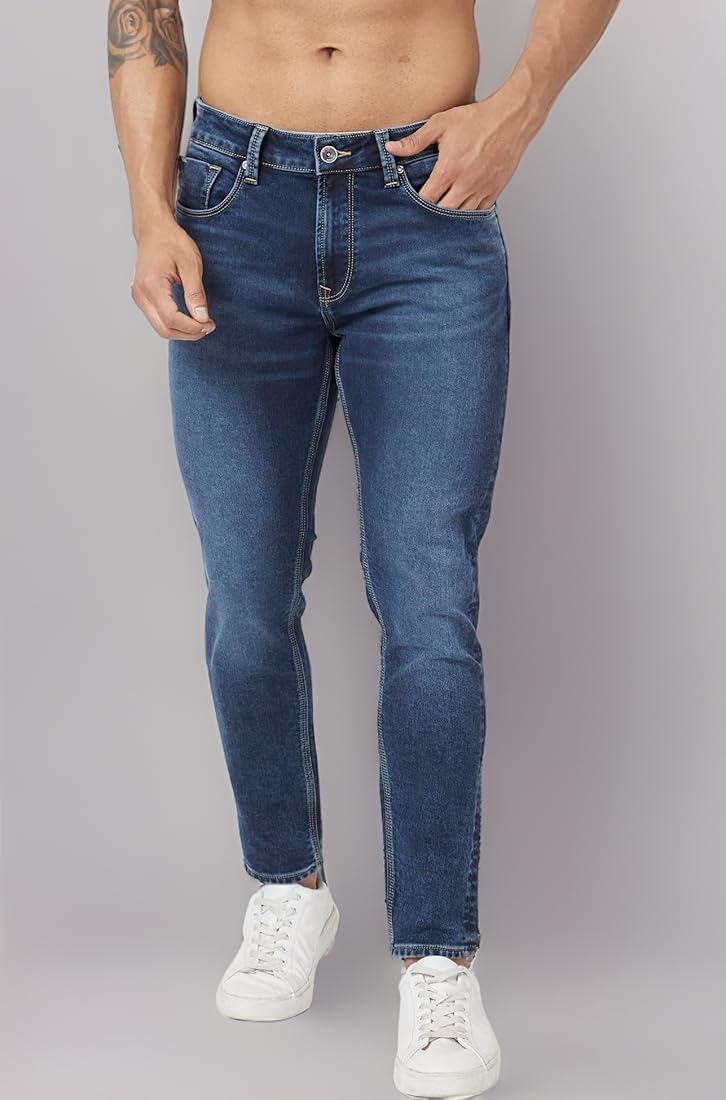 Spykar Mid Rise Slim Fit Blue Jeans for Men