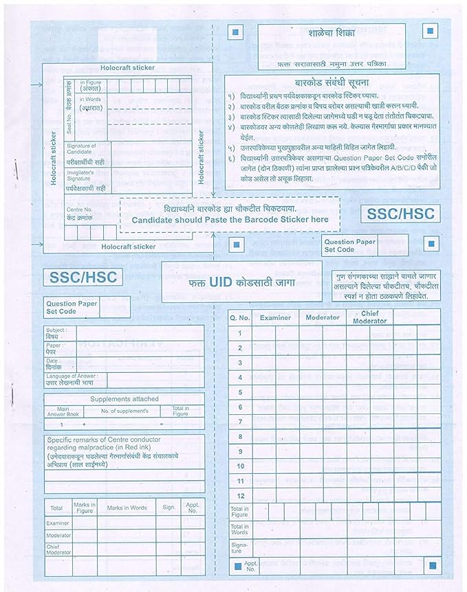 SSC/HSC Exams Blank Answer Sheets/Answer Papers |100 Sheets |28.2 cm x 20 cm