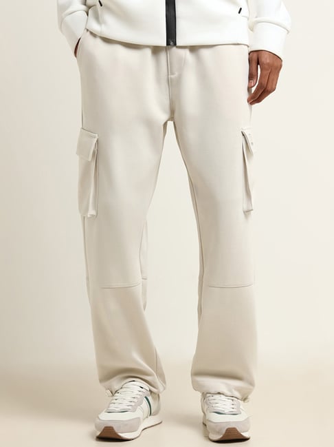 Studiofit by Westside Cream Straight-Fit Mid-Rise Cargo Track Pants