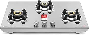 Sujata Gas Stove 3 Burners Steel Body | 9 Years Warranty, ISI Certified | 3 Burner Gas Stove Stainless Steel, Gas Chulha 3 Burner Steel, LPG Ready & P...