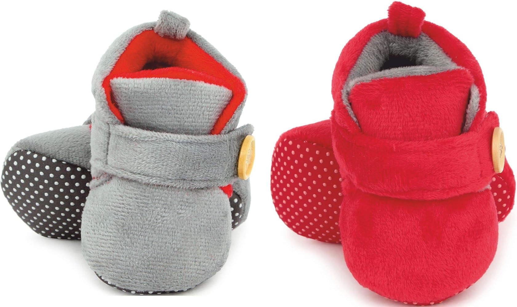 Superminis Baby Girls and Boys Dual Color Shoes/Booties with Wooden Button - Soft Base, Ankle Length, Breathable for Newborn Girls and Boys