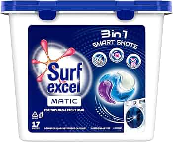 Surf Excel Matic 3 in 1 Smart Shots 17 pcs, Laundry Detergent Pods for Tough Stain Removal in Front Load & Top Load Washing Machines, Fragrance + Care