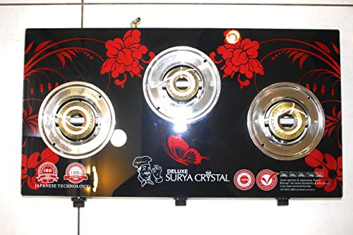 SURYA CRYSTAL SCR101 R Fully Automatic Aluminium 3 Burner Glasstop Gas Stove ( Red )