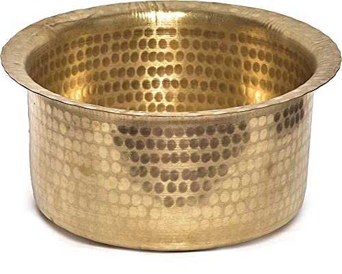 THATHERA Brass Hammered Patila, Brass Tope, Brass Cookware, Patila, Round Heavy Bottom Tapeli, Bhagona Capacity- 1 Liter