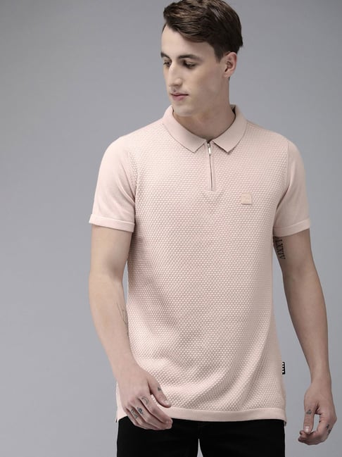 The Bear House Light Pink Self Design Polo T-Shirt