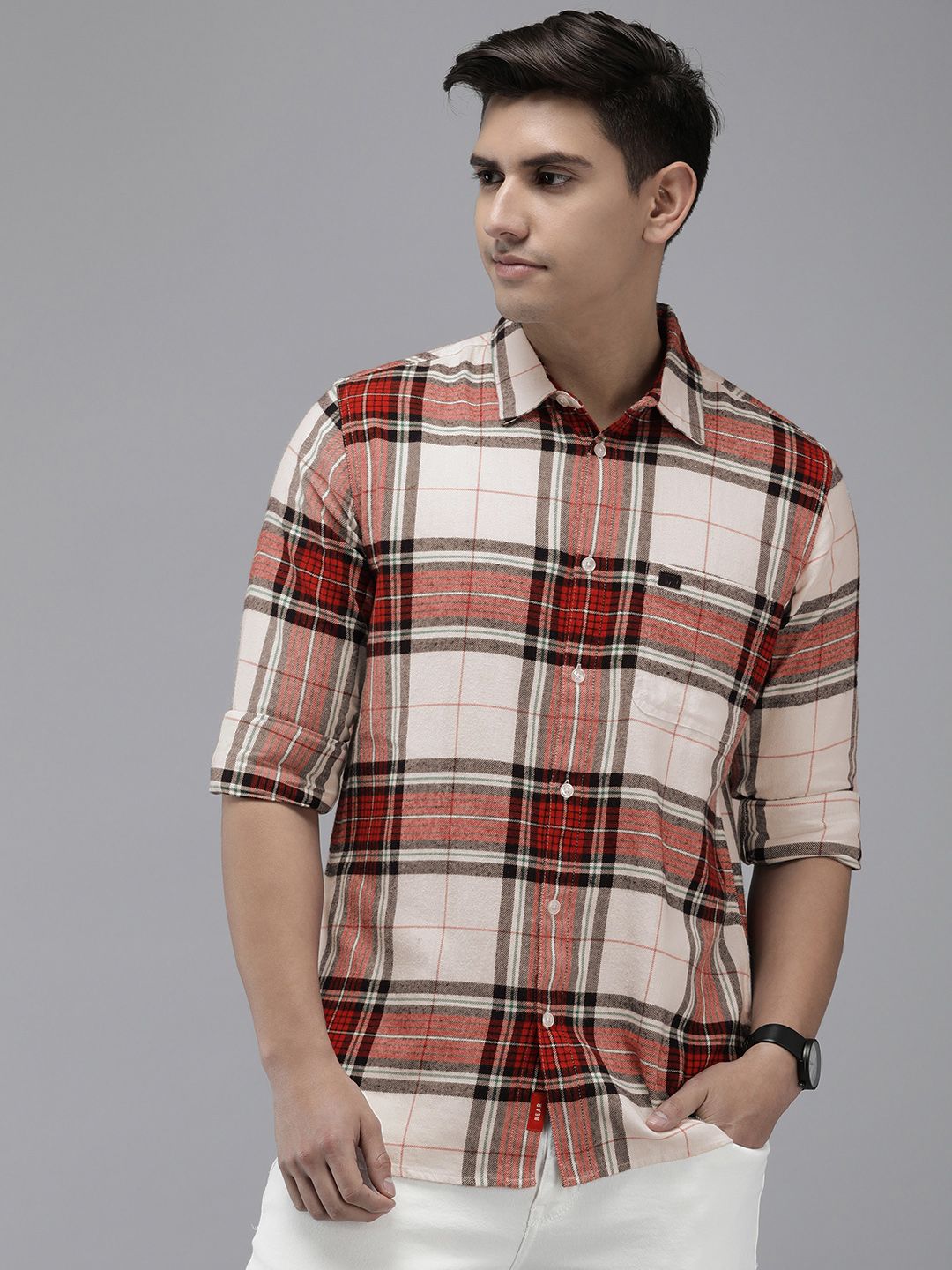 THE BEAR HOUSE Men Slim Fit Flannel Pure Cotton Checked Casual Shirt