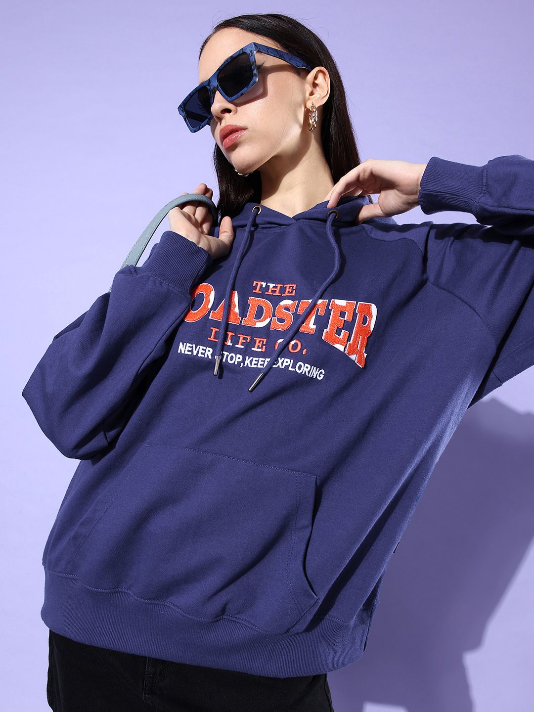 The Roadster Life Co. Brand Logo Embroidered Hooded Oversized Sweatshirt