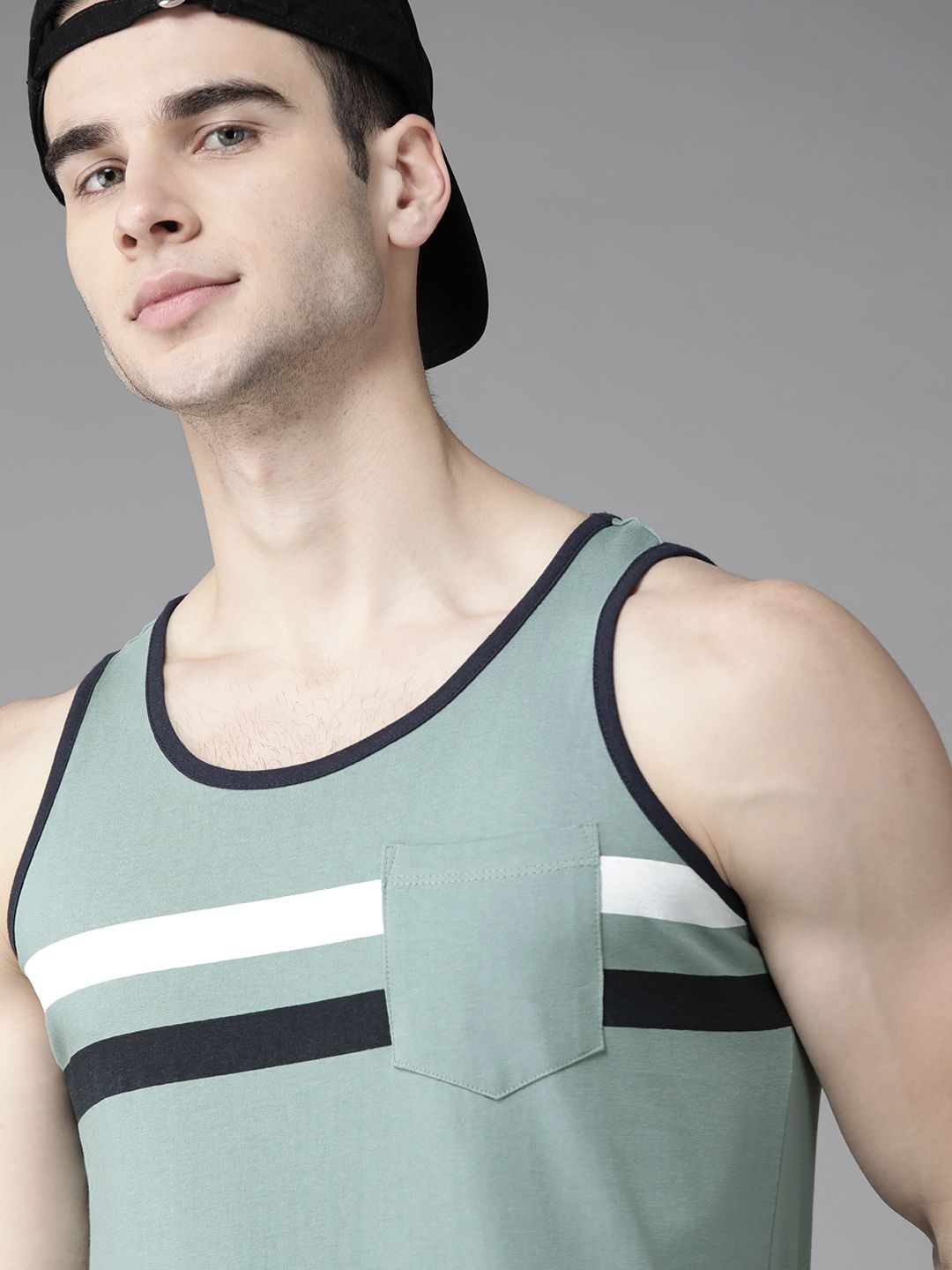 The Roadster Lifestyle Co Men Green & Black Pure Cotton Striped Round Neck T-shirt