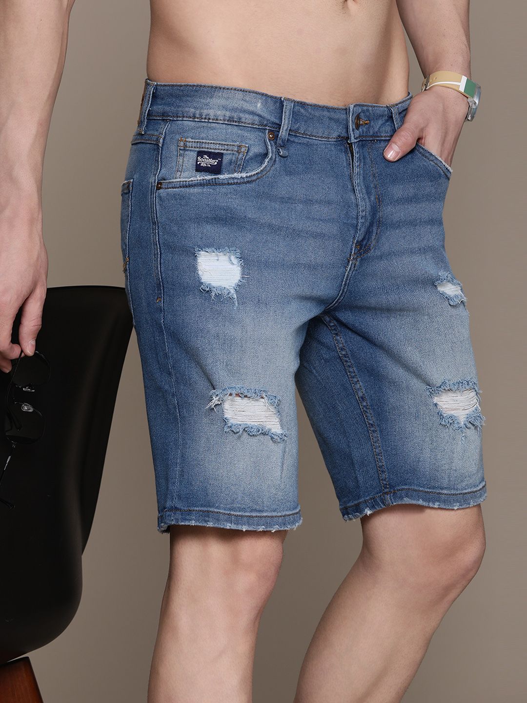 The Roadster Lifestyle Co. Men Slim Fit Washed Distressed Denim Shorts