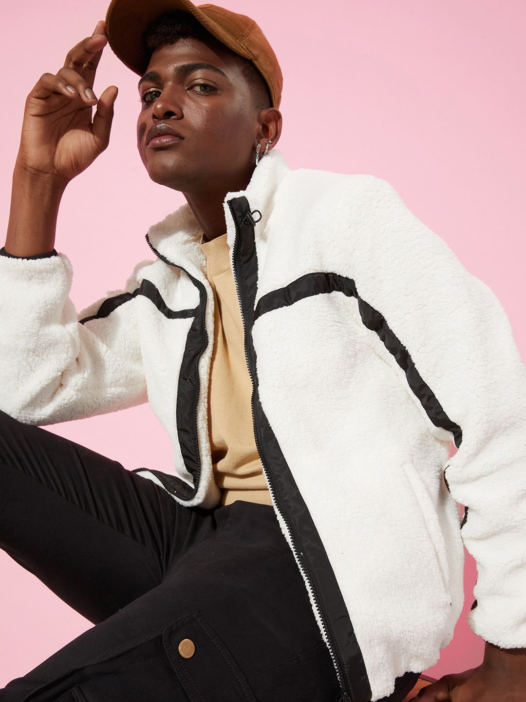 The Roadster Lifestyle Co. Men Striped Detail Sherpa Tailored Jacket