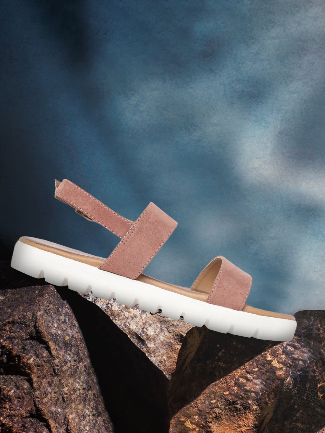 • A pair of nude-coloured solid open toe flatsHas backstrap with buckle closureUpper Material: syntheticCushioned footbedTextured and patterned outsoleWarranty: 1 monthWarranty provided by brand owner/manufacturer