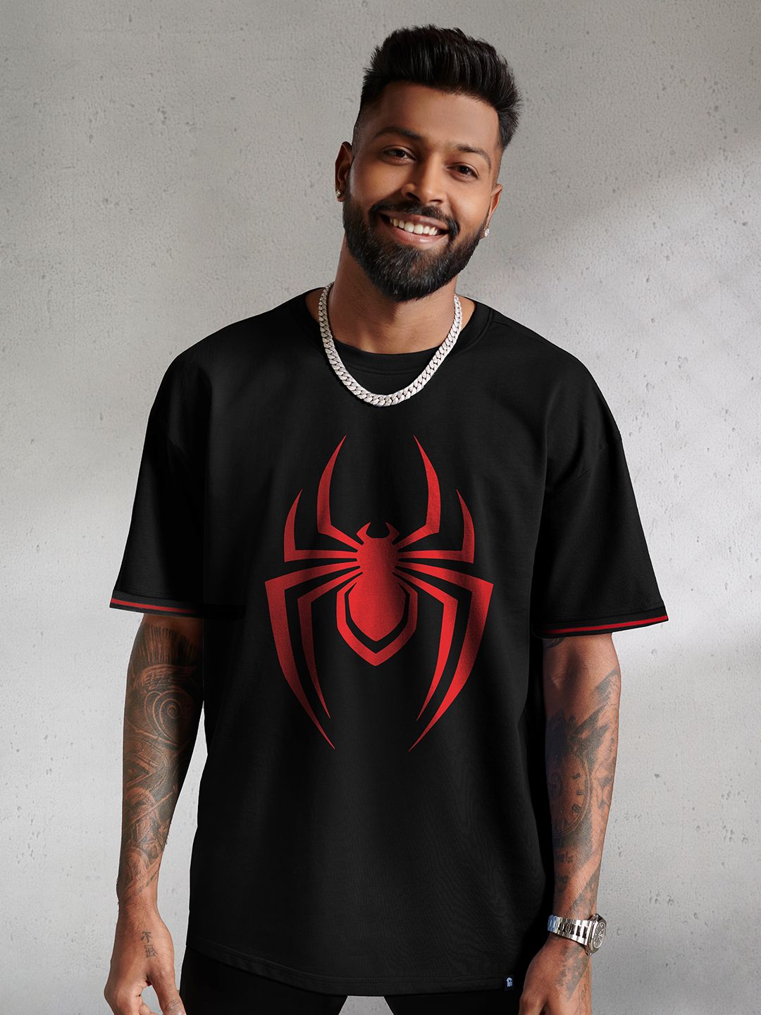 The Souled Store Men Black Spider-Man Printed Regular Fit Cotton Oversized T-shirt