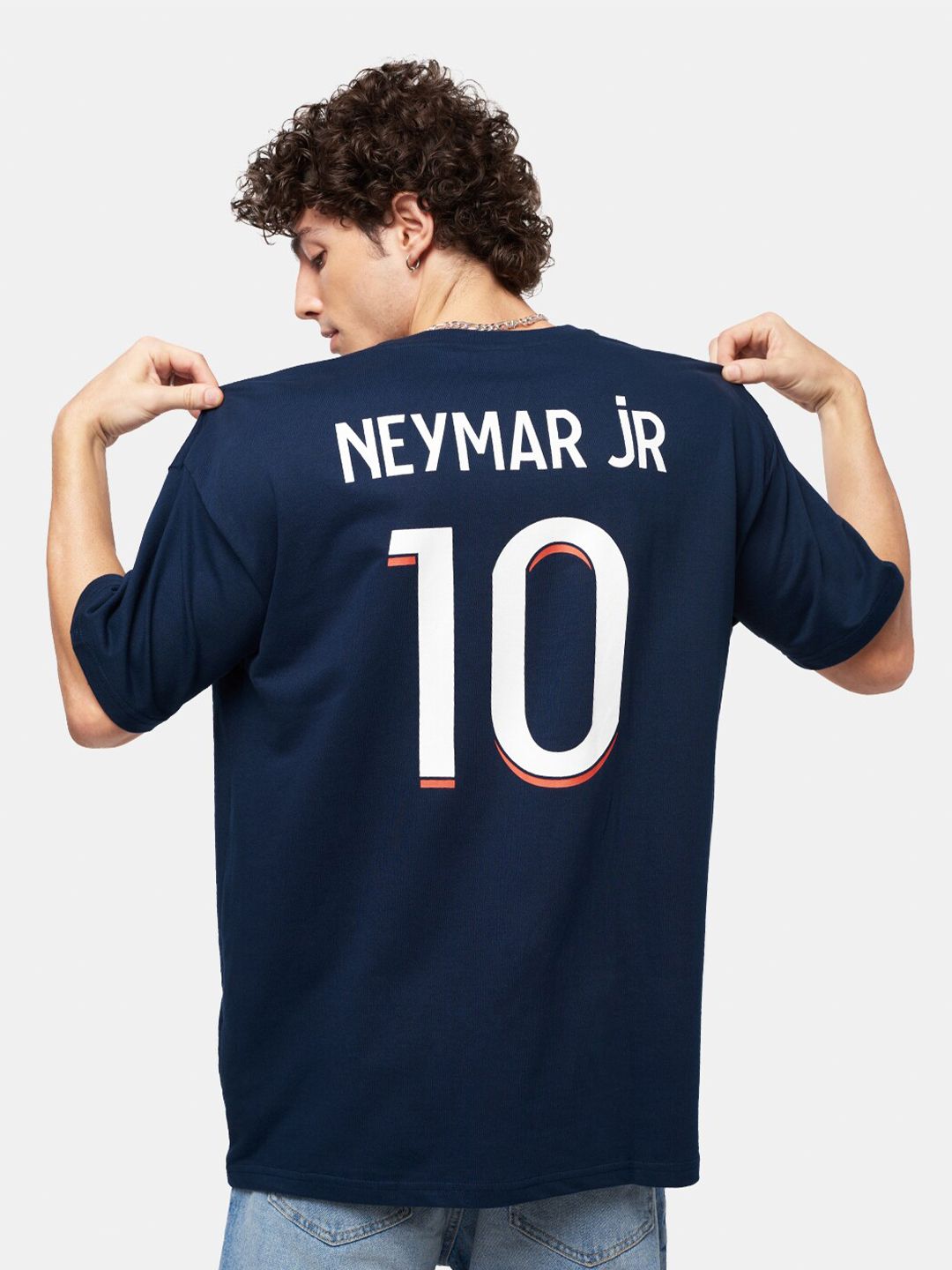 The Souled Store Men Navy Blue Paris Saint-Germain Neymar Printed Oversized T-shirt
