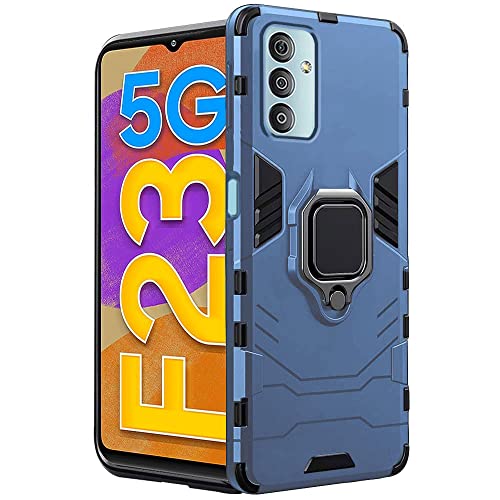 TheGiftKart Tough Armor Samsung Galaxy F23 5G Bumper Back Case Cover | Ring Holder & Kickstand in-Built | 360 Degree Protection Back Case Cover for Samsung Galaxy F23 5G (Greyish Blue)