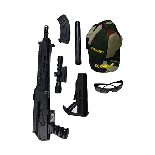 • COMPONENTS INCLUDED : 1. 90 CM LONG TOY GUN3. BB BULLETS 4. GOOGLES 5. WEIGHT MILITRY STYLE CAP 6. TOY GUN BUTT 7. TOY MAGAZINE FOR UPLOADING BB BULLETS.