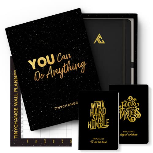 TINYCHANGE Planner Pro Undated Diary; Daily Weekly Organizer Notebook Habit Tracker and Gratitude Journal; Free Notebook To-do List and Wall Planner; Stickers and Bookmarks
