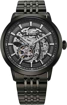 Titan Phoenix Skeletal Automatic Analog with Gun Dial Black Stainless Steel Strap Watch for Men