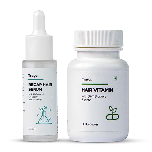 Traya Hairfall Control Combo | Contains DHT Blocker & Hair Growth Actives | Biotin, Bhringraj, Redensyl, Procapil and Capixyl | (Hair Vitamin 30 Capsules + Hair Recap Serum 30ml)