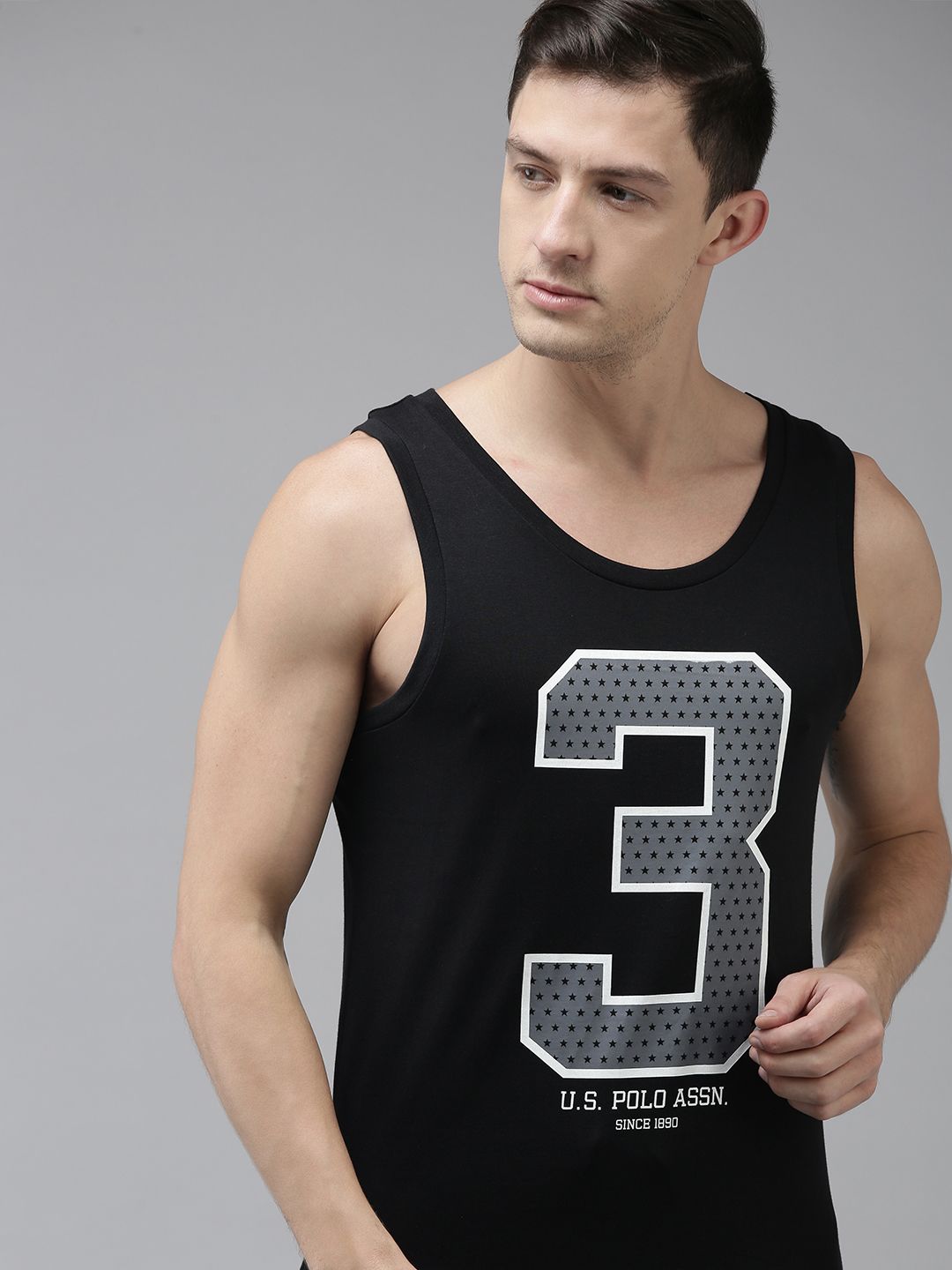 U.S. Polo Assn. Men Black & Grey Printed Gym Vest