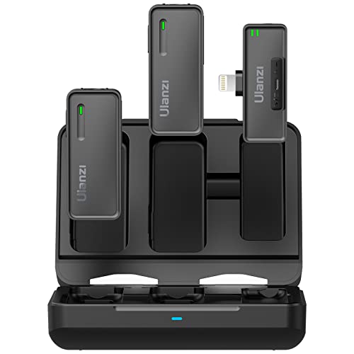 ULANZI UW-MIC Wireless Lavalier Microphone 2.4GHz for iPhone iPad, 2-in-1 Plug-Play Mic with Charging Case for Phone Video Recording Interview Youtubers Vloggers, 328ft Transmission Range
