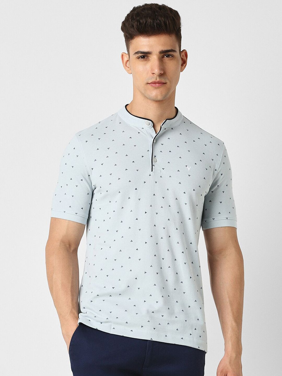 Van Heusen Geometric Printed Mandarin Collar Pure Cotton T-shirt