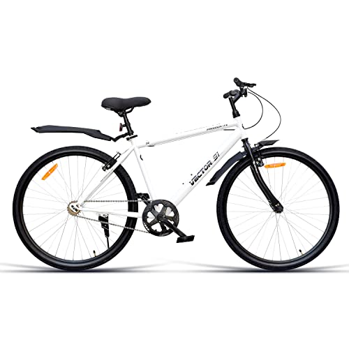 Vector 91 Freedom FX 26T White Single Speed Hybrid Cycle, 18 Inches Steel Frame for Men