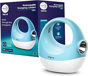 Wipro Garnet EL1 Multifunctional Rechargable Emergency Light | Type-C Fast Charging | Emergency SOS Mode | Top Holder & Hanging Option | 2400 mAh Batt...