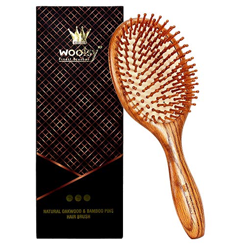 Woolsy Premium OakWood Hair Brush with Natural Bamboo Bristles - Anti-Dandruff Paddle Brush For Men & Women