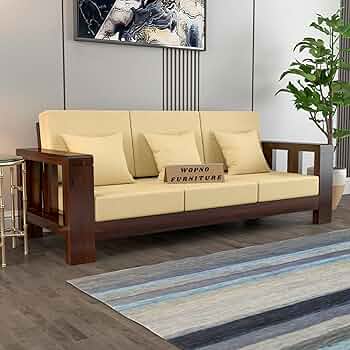 Wopno Furniture Sheesham Wooden 3 Seater Sofa for Living Room | Solid Wood Sofa | Rosewood Sofa Set for Home & Office | Lounge (Walnut, 3 Seater)