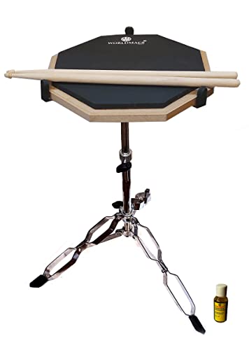 WORLDMACS 12" THREE SURFACE (BSIII) BHARAT STAGE 3 ADVANCE DRUM PRACTICE PAD WITH BAG, STAND,DRUMSTICKS AND REBOUND ENHANCER LIQUID(59 ML)
