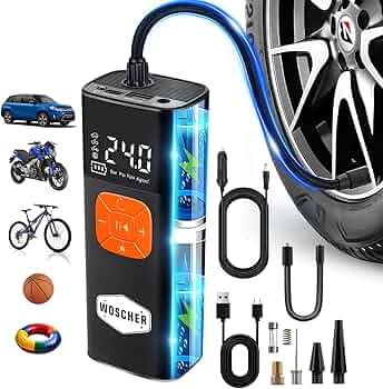 Woscher i6 2in1 Cordless Tyre Inflator for Car & Bike |150 PSI Wireless Tyre Inflator | Digital Display | Air Pump Compressor for Car,Bikes,Bicycles &...