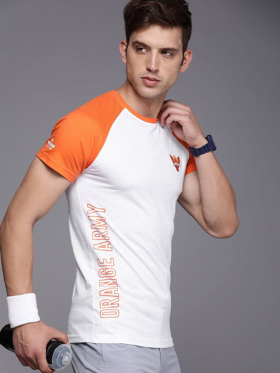 WROGN ACTIVE Men IPL Sunrisers Hyderabad Printed Pure Cotton Raglan Sleeves T-shirt