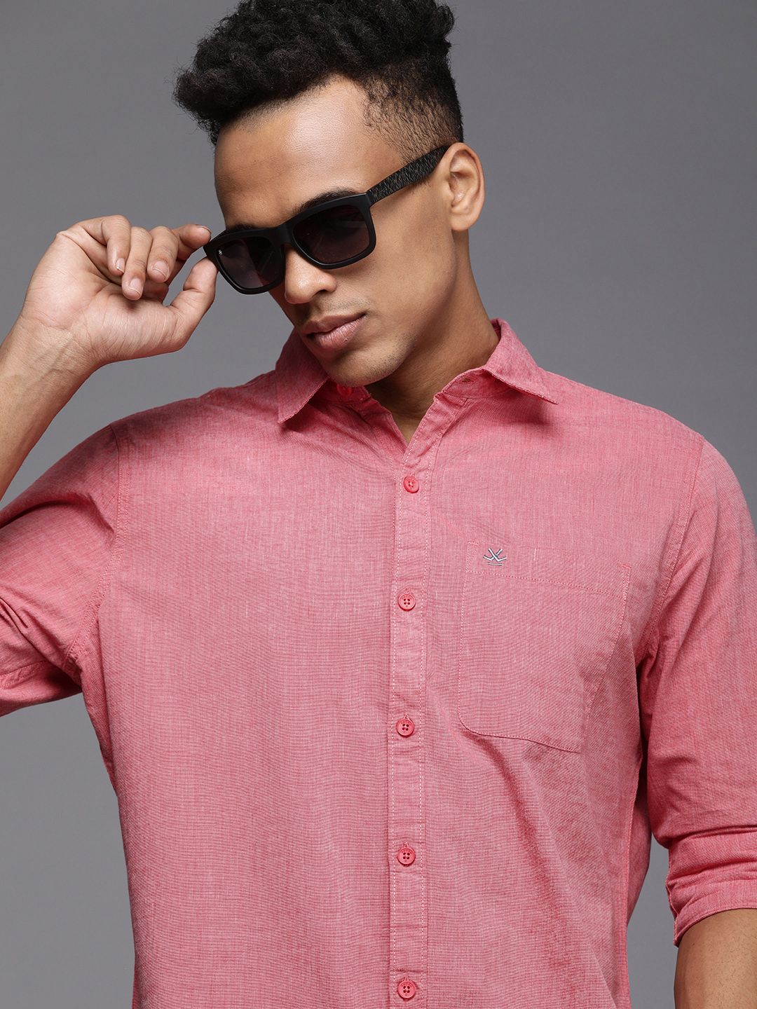 WROGN Men Coral Red Solid Slim Fit Pure Cotton Casual Shirt
