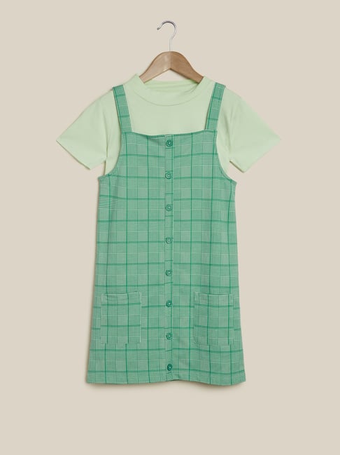 Y&F Kids by Westside Light Green Houndstooth Pinafore and T-Shirt Set