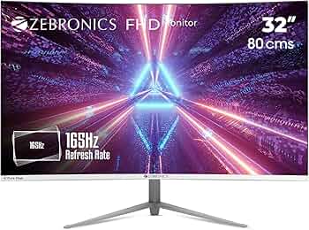 Zebronics ZEB-AC32FHD Curved Slim Gaming LED Monitor with 80cm (32”) Wide Screen, Full HD 1920x1080, 165Hz Refresh Rate, Display Port, HDMI, 300cd/m² Bright, USB, Built in Speaker and Wall mountable