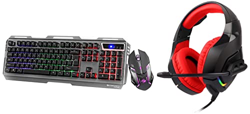 ZEBRONICS Zeb-Transformer Gaming Keyboard and Mouse Combo & Zeb-Rush (Red) Premium Gaming Headphone with RGB LEDs, Dual 3.5mm Jack, Converter Pin, Cushion Headband, Volume Controller