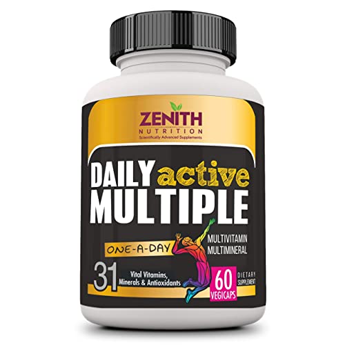 Zenith Nutrition Multivitamin for Men & Women with Astaxanthin, Piperine & Ginseng - 60 veg capsules | Daily Active Multiple with Antioxidant,
